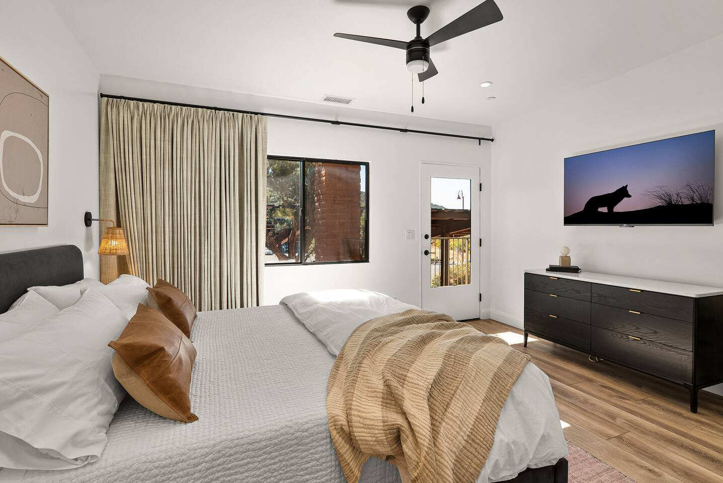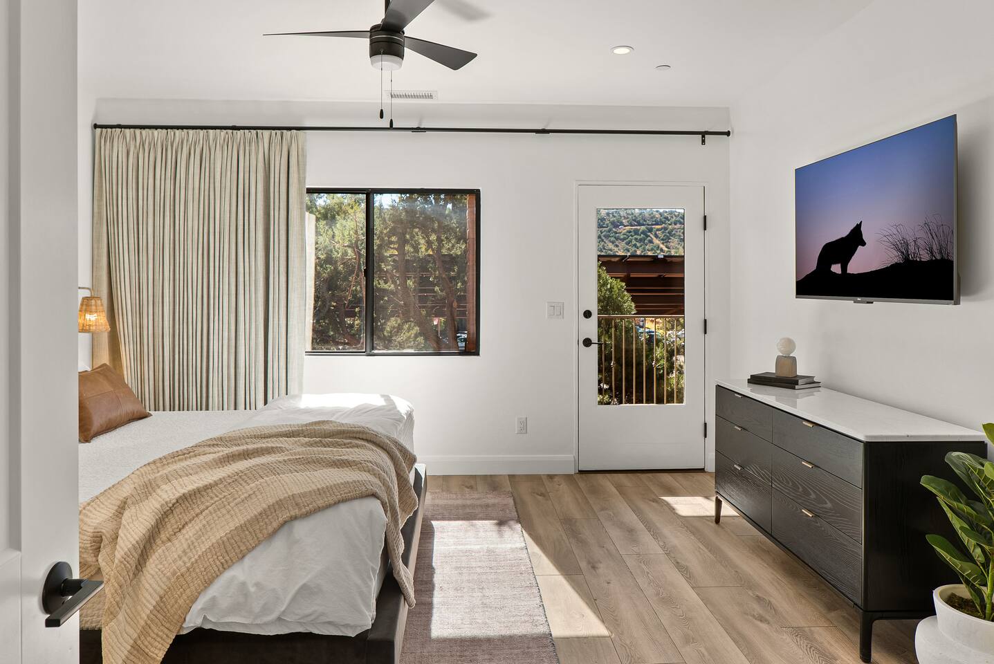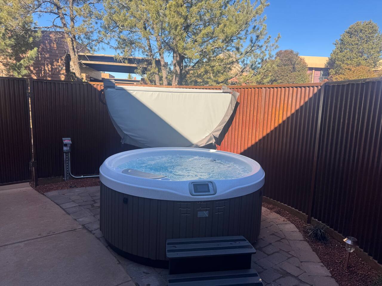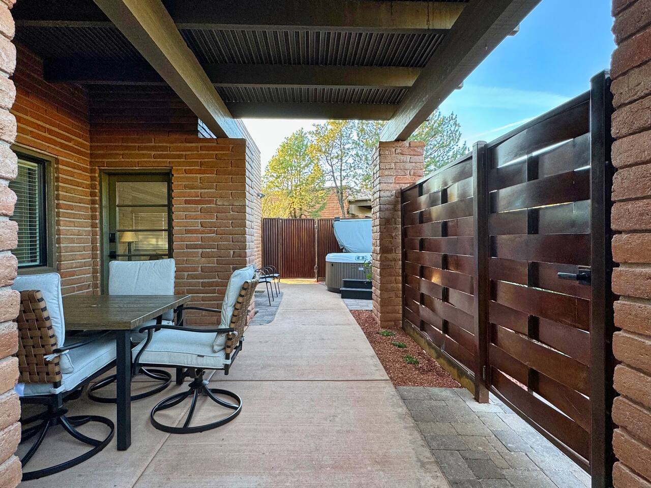 Summer Specials on last minute bookings. Coyote Den Villa is nestled in the heart of Sedona. The Villa offers the perfect blend of comfort, luxury and convenience. You’re just moments away from world-class hiking trails, vibrant shops, art galleries, and eateries. Featuring two spacious bedrooms, each with its own ensuite bathroom, a fully equipped kitchen. Patio with a hot tub and BBQ grill where you can relax under the stars. Rear balcony with access to fenced seating and fire feature.