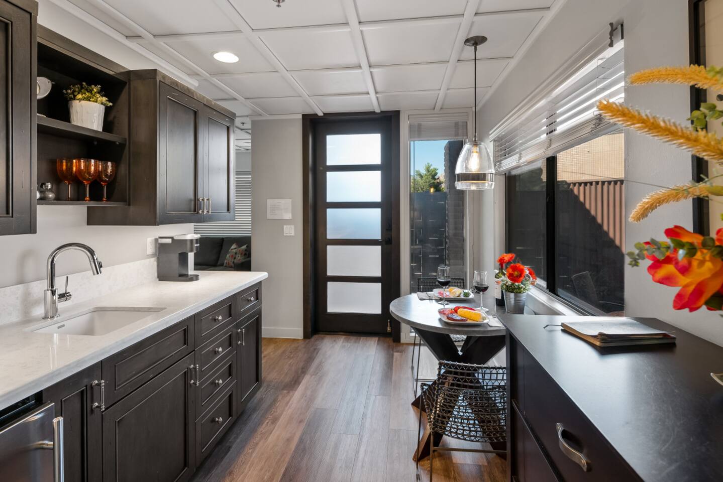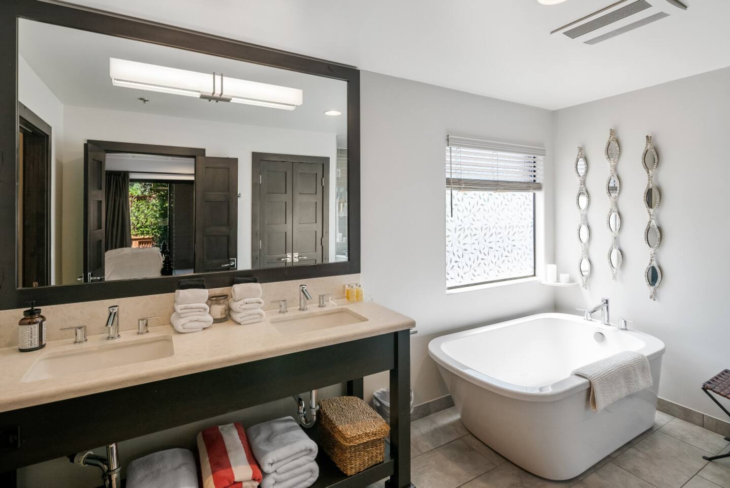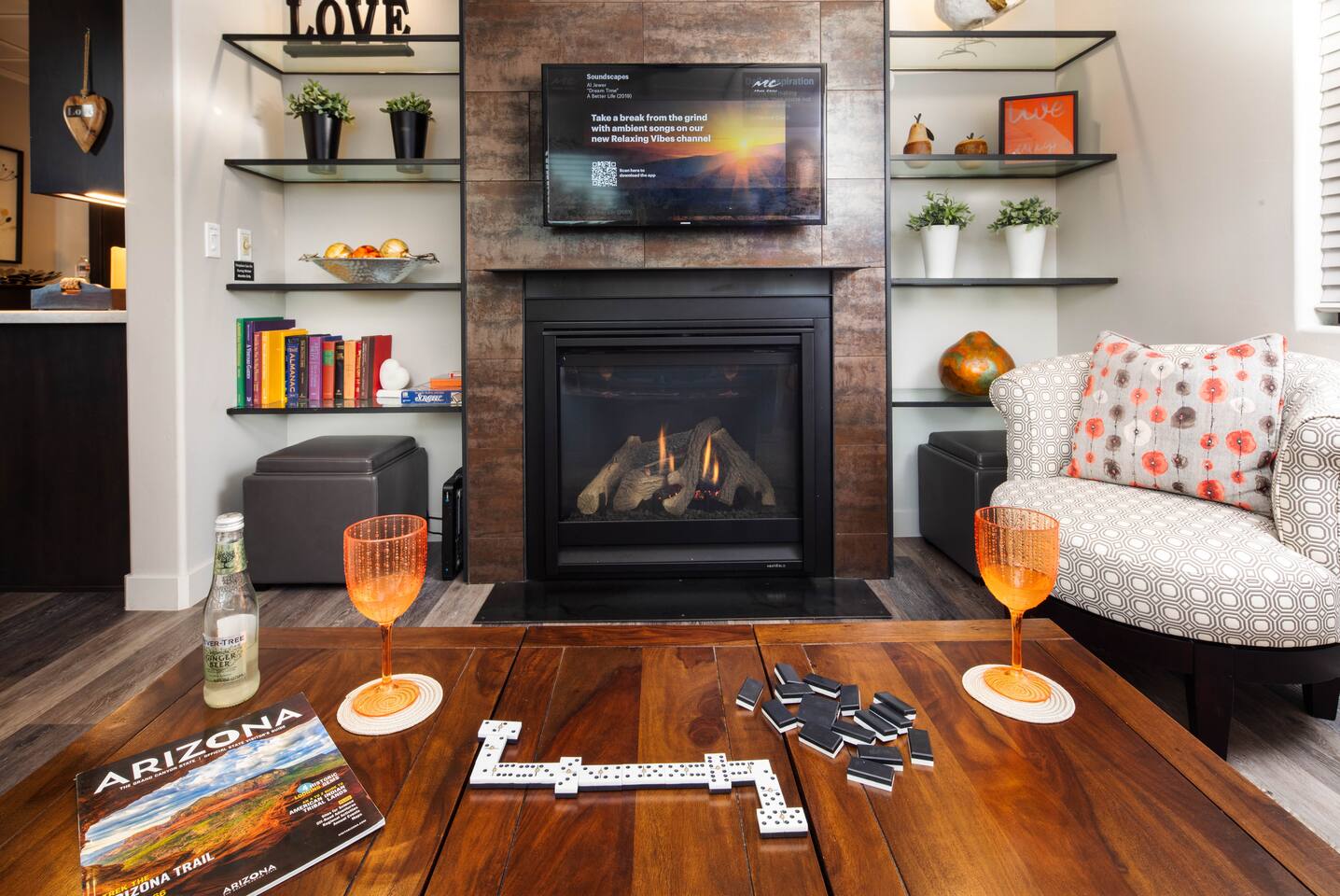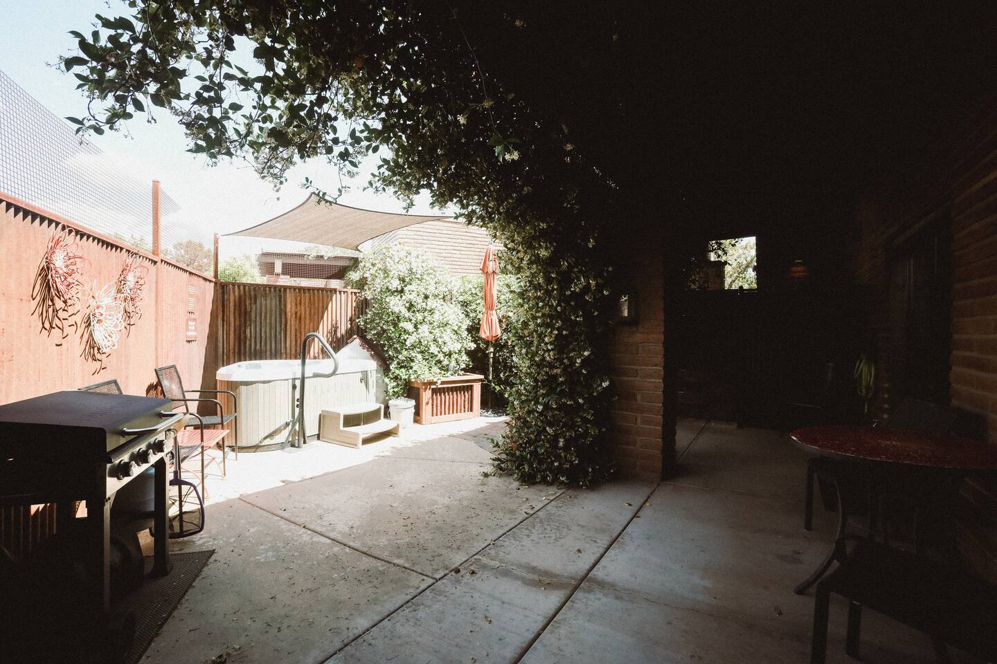 Desert Poppy Villa…a dreamy getaway for two... This villa offers an intimate experience with its own private patio and spa. Professionally decorated and beautifully appointed, the villa has more than 620 square feet of living space with one-bedroom, large bath, living with fireplace, two TVs, indoor and outdoor dining area and a private entrance. Complimentary covered parking allows for ease of access to your accommodation. Desert Poppy Villa is located in the heart of Sedona within walking distance to restaurants, shops, National Forest hiking trails, theaters, gourmet grocery stores, and many scenic destinations. There is an adjacent villa, the “Honeysuckle” which is also available. The villa is designed with your comfort in mind. For instance, enjoy a Sedona sunrise with a cup of gourmet coffee prepared in your K-cup coffee brewer while surfing the net for the day’s activities. Take a short drive to the many wonderful Sedona attractions. Visit the Chapel of the Holy Cross or hike one of our numerous National Forest trails. Visit a Stupa and take a yoga class. Just a short drive away, you can experience the wonders of Oak Creek Canyon, designated as a national scenic drive. While in Oak Creek Canyon visit Slide Rock and hike the famous West Fork Trail. The welcome notebook will provide a plethora of choices for you to experience while visiting Sedona and the surrounding areas. A scenic two hour drive will take you to the Grand Canyon, one of the seven natural wonders of the world. Upon returning to your home away from home, check out your kitchenette. You will find ample space to prepare a sumptuous dinner cooked out on your very own barbeque grill just steps away on your private patio. Take a short stroll from your villa and you will find several organic grocery stores where you can stock up on your favorite munchies or maybe the evening’s dinner and breakfast supplies. Perhaps a glass of wine is in order as you enjoy the mild evening temperatures. Relax on your private outdoor patio while viewing Sedona’s starry nights, a wonder to behold. To round out your villa experience, the custom bathroom will surely make you feel pampered with its large spa like floor plan. Your bathroom features include custom cabinets, fluffy bath towels, robes, romantic decorative lighting, quartz counter tops, large rain shower head and a free standing soaking bathtub for two. When the day comes to a close relax in the comfortable seating area and enjoy a romantic fire in your custom fireplace. On your flat screen television, watch your favorite television show or movie. Enjoy a restful night’s sleep on your memory gel mattress while the luxurious bed linens wrap you in comfort. Room darkening blinds make it easy to sleep-in, or you may want to rise with the sun and start another adventure in Sedona’s Red Rock Country! The sky is the limit and we look forward to welcoming you to the Desert Poppy Villa where we hope you will take home some unforgettable memories. Amenities: Custom designed gas fireplace Designer California King Bed with memory gel mattress Luxurious Bedding Custom cabinets with quartz counter tops Custom built furniture and wool area rug Bath products provided Hair dryer Fluffy high quality bath towels and outdoor spa towels Large spa feeling bathroom with deep-soaking free standing tub for two Custom shower with rain and wand shower heads (2) HD flat screen TV, Free Wi-Fi Complimentary covered parking Under countertop Refrigerator with ice maker, microwave, toaster, K-cup coffee brewer with coffee and tea Outdoor patio with Spa, barbeque grill and dinning area Room darkening window coverings Iron & ironing board His and her Bath Robes Self-controlled heating and cooling Separate Bathroom heating Closet with walnut hangers Books and games On site laundry facilities Patio lounge and dining seating