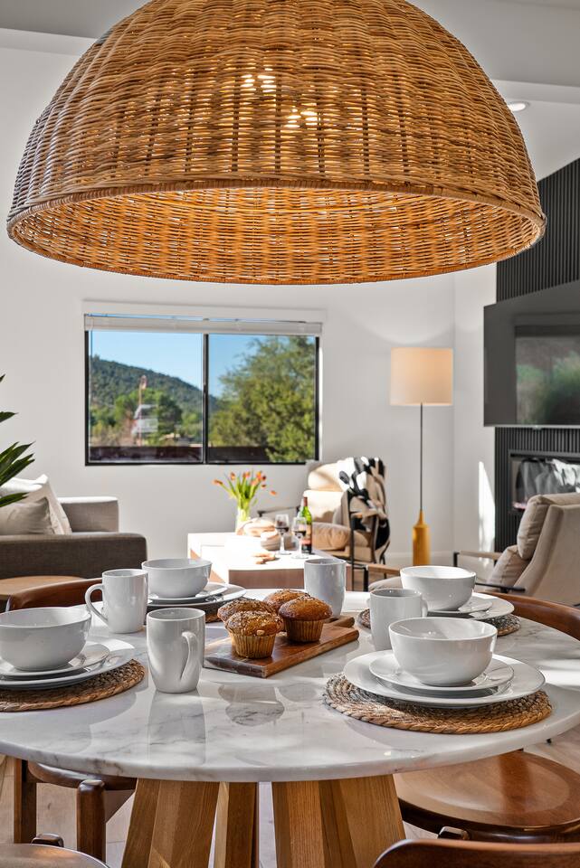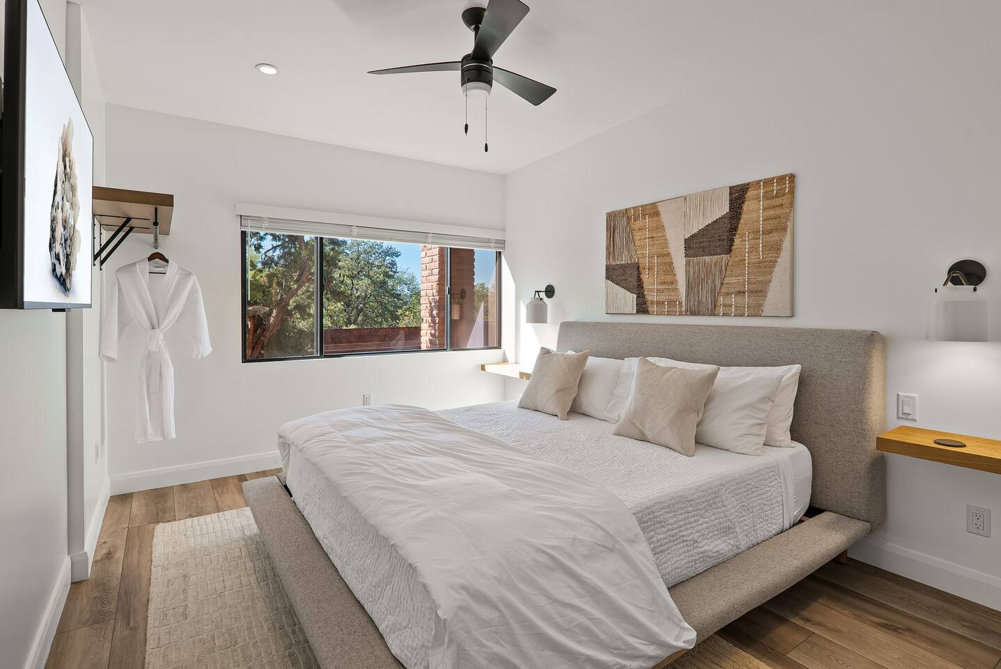 Close to Posse Ground Park, home of the Sedona Mountain Bike Festival March 14-16! Welcome to your dream vacation rental! This stunning two-bedroom retreat offers luxury and comfort, featuring ensuite bathrooms, and Roku TV's in each bedroom. Cook up a storm in the fully equipped kitchen, and unwind in the comfortable living room, complete with 65" Roku TV. Step outside to your private patio, with a barbecue and seating for those perfect outdoor meals. This is vacation living at its finest! Enjoy your stay!